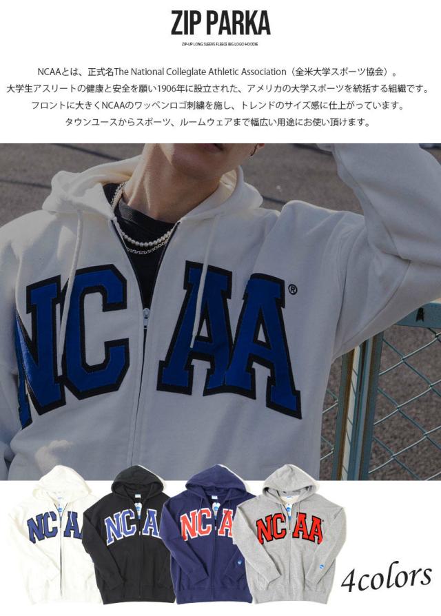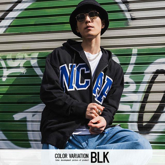 パーカー メンズ 長袖 トップス スウェット スエット 裏毛 ジップアップ 90s 90年代 カレッジロゴ 刺繍 ワッペン ルームウェア 部屋着 ユニセックス レディース ブランド 白 黒 アメカジ カジュアル ストリート スポーティー 韓国ファッション NCAA エヌシーエーエー 全米大学スポーツ協会 プレゼント ギフト配送について