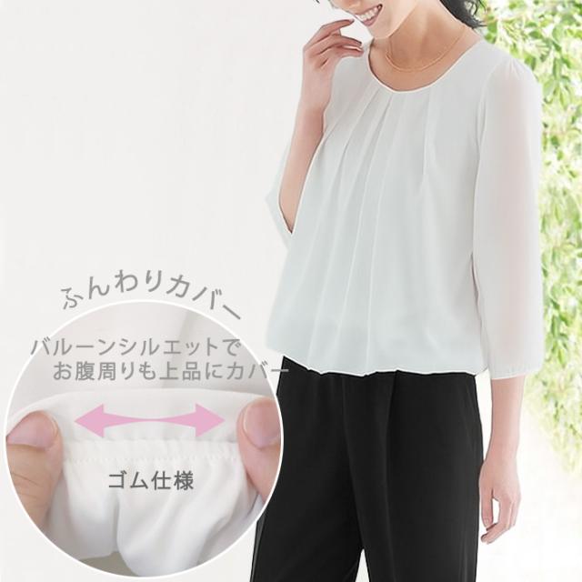 ブラウス きれいめ 上品 透けない 7分袖 8分袖 長袖 フォーマル オフィス スーツ インナー オフィスカジュアル しわになりにくい フロントタック 体型カバー バルーン袖 入学式 入園 卒業 卒園 七五三 白 ママ 大きいサイズ