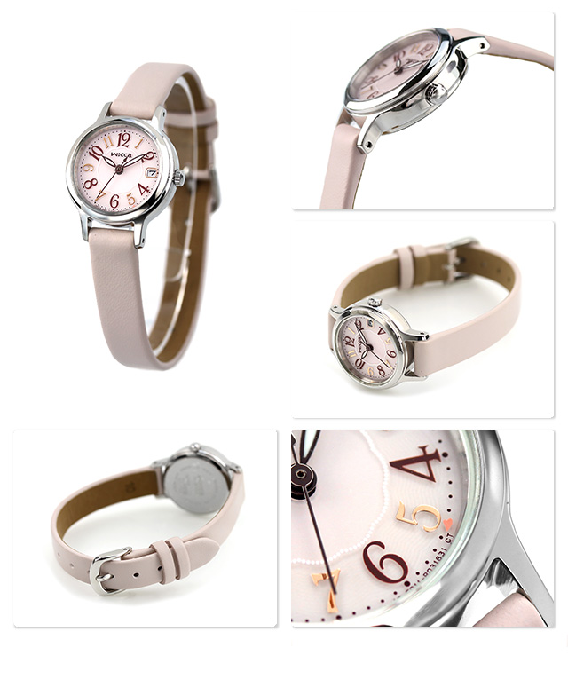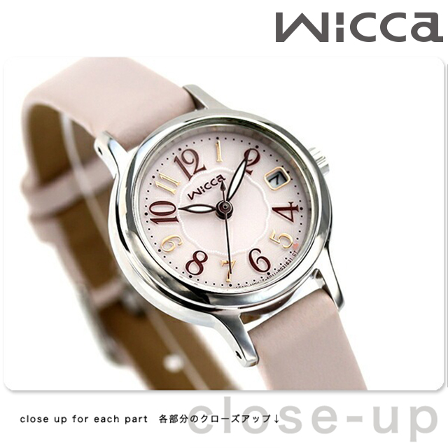 正規品 7年保証キャンペーン 送料無料 シチズン ウィッカ ソーラーテック レディース 腕時計 KH4-912-90 CITIZEN wicca アナログ ピンク 革ベルト ◆フレッシャーズにもぴったりの可愛らしさと視認性を両立した、デイト付きのベーシックなモデルが登場。大きめのアラビア数字インデックスは視認性バツグン。文字板の外周部分にさりげなく描かれたお花のパターンが華やかさを演出します。時分針は夜光付き。暗い場所でも時刻がしっかり確認できます。「素敵なご縁がありますように」と「合格」の2つの意味を込めて、5時位置にさりげなくハートのマークをあしらっています。環境にも配慮し、バンドにはペットボトルのリサイクル素材「エコペット」を使用。ベーシックなブラウンと甘すぎないスモーキーピンクはどんな服にも合わせやすく、使い勝手の良いカラーです。 発売日:22年3月発売