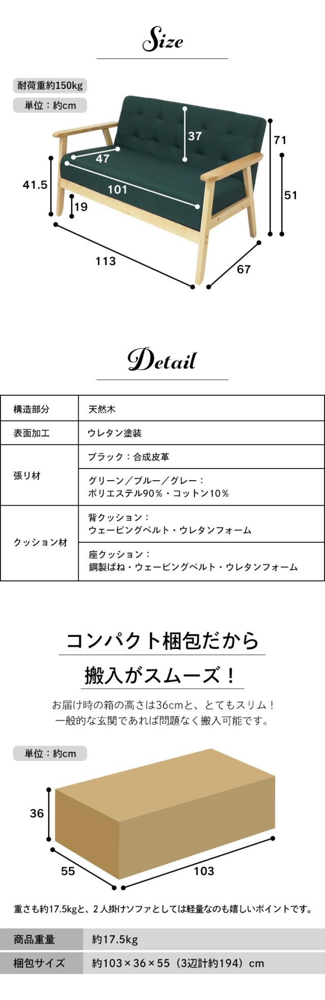 ソファ 2人掛け 2Pソファ オスロ 19349 クロシオ [代引不可] 全4色 ソファ コンパクト モダン ナチュラル 一人暮らし おしゃれ おすすめ リビング 送料無料 【int】