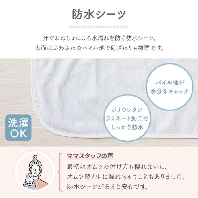 防水シーツ:表生地 綿80%・ポリエステル20%、裏 ポリエチレンコーティング