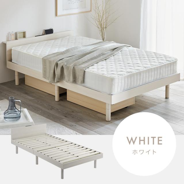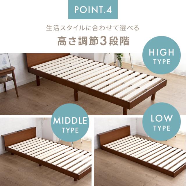 高さが3段階に調整できるUSBコンセント・棚付きのベッドフレームです。