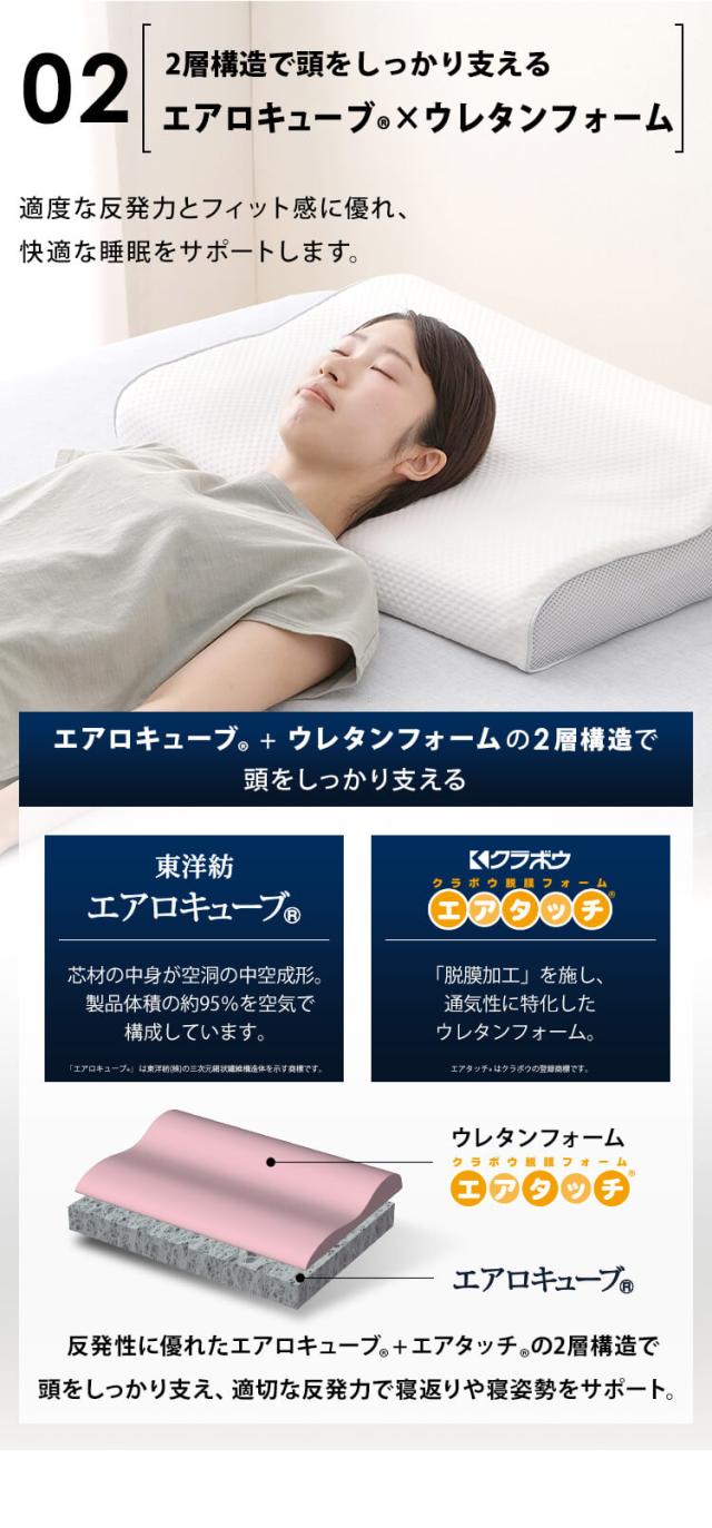 エアロキューブ(R)+エアタッチ(R)の2層構造で頭をしっかり支え、