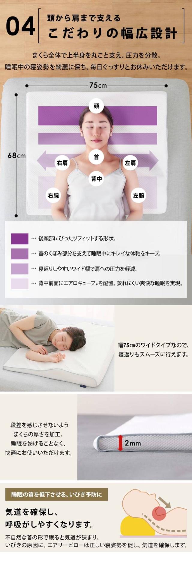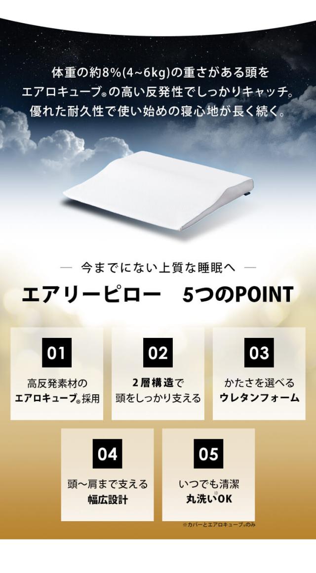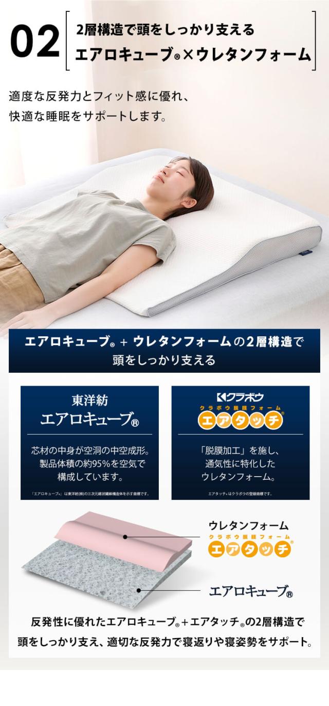 エアロキューブ(R)+エアタッチ(R)の2層構造で頭をしっかり支え、