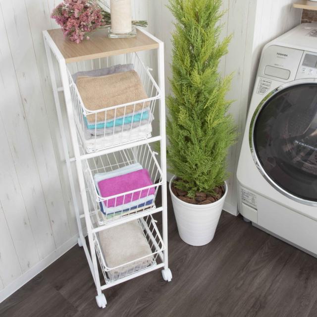 省スペース対応のランドリーラックです。縦型収納で場所を取りません。