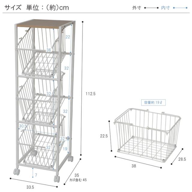 本体:幅33.5×奥行35(カゴ含む45)×高さ112.5cm