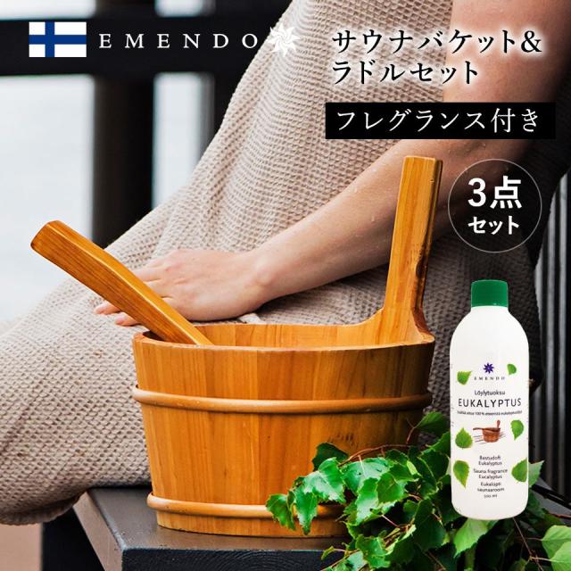 【EM-2434】EMENDO エメンド サウナ 木製バケット ラドル アロマオイル ユーカリ付 500ml ロウリュ 北欧 フィンランド直輸入 3点セット