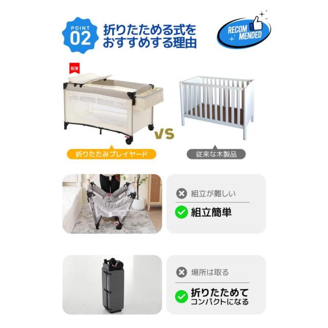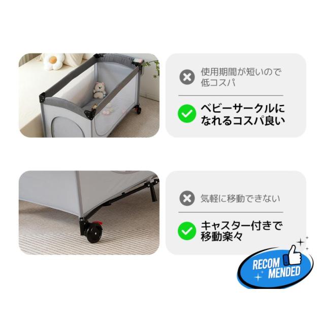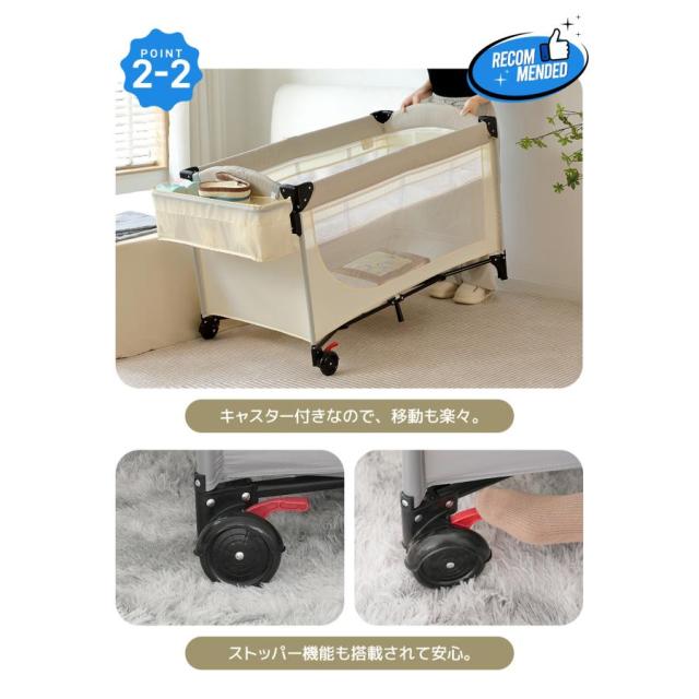「クーポン配布中」ベビーベッド 折りたたみ ベビーサークル お昼寝ベッド プレイヤード おむつ替えテーブル付 お昼寝マット キャリーバッグ付 マットレス付 キャスター付き 新生児 出産祝い 赤ちゃんベッド お誕生日 お祝い