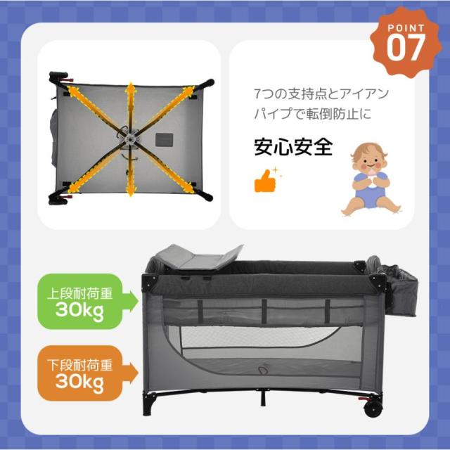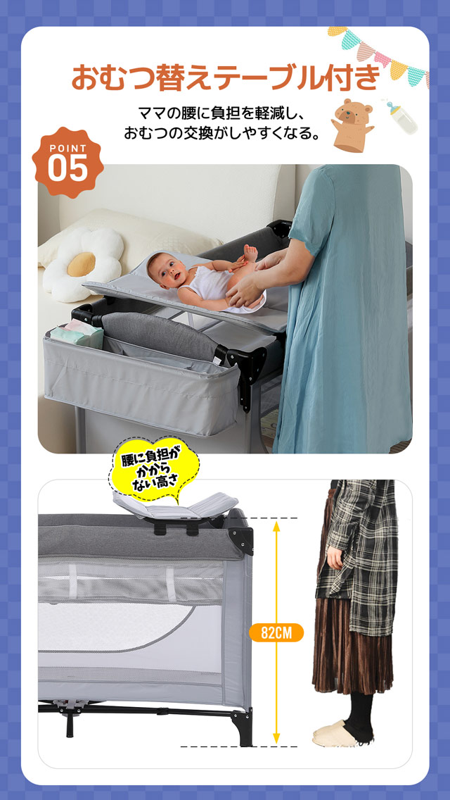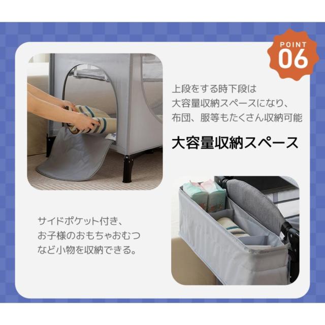 【優れた収納力】 サイトポケット付き、下段も収納スペースとしてお使い頂けます。お子様のおもちゃ、おむつ、日用品などを収納できます。