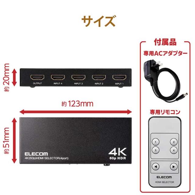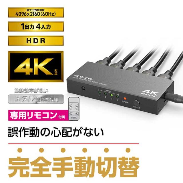 エレコム HDMI切替器(4ポート) PC ゲーム機 マルチディスプレイ ミラーリング 専用リモコン付き
