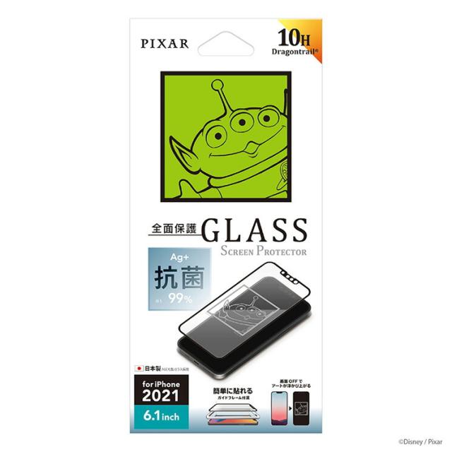 iPhone 13 13Pro 液晶画面全面保護ガラスフィルム ディズニー エイリアン 抗菌 高光沢 SIAA 硬度10H 耐衝撃 可愛い かわいい おしゃれ オシャレ キャラ フルカバー PGA