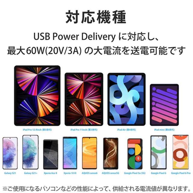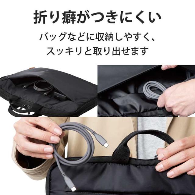 シリコン素材を採用した柔らかく、なめらかな手触りのUSBケーブルです。 折り癖のつきにくさと高い耐久性を兼ね備えているので、モバイル用として束ねて持ち運ぶのにおすすめです。 USB Power Delivery(最大60W)に対応し、スマートフォン・タブレットを超高速充電!USB Type-C端子を搭載した機器同士の接続ができます。■コネクタ形状1:USB Type-C(TM) オス ■コネクタ形状2:USB Type-C(TM) オス ■対応機種:USB Type-C(TM)端子を持つパソコン・充電器・モバイルバッテリーおよび、USB Type-C(TM)端子を持つスマートフォン・タブレットなど※USB Type-C and USB-C are trademarks of USB Implementers Forum ■ケーブル長:1.0m ※コネクター含まず ■ケーブル太さ:4.3mm ■規格:USB2.0規格正規認証品 ■対応転送速度:最大480Mbps ※理論値 ■パワーデリバリー対応:○ ■プラグメッキ仕様:金メッキピン ■シールド方法:2重シールド ■カラー:グレー ■パッケージ形態:袋+ステッカー ■環境配慮事項:EU RoHS指令準拠(10物質)、簡易パッケージ