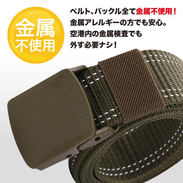 ベルト、バックルすべて金属不使用だから金属アレルギーの人でも安心!
