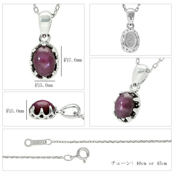 天然 スタールビー ネックレス 天然石 ルビー シルバー925 カボション オーバル 一粒ネックレス パワーストーン 楕円 丸 7月 誕生石