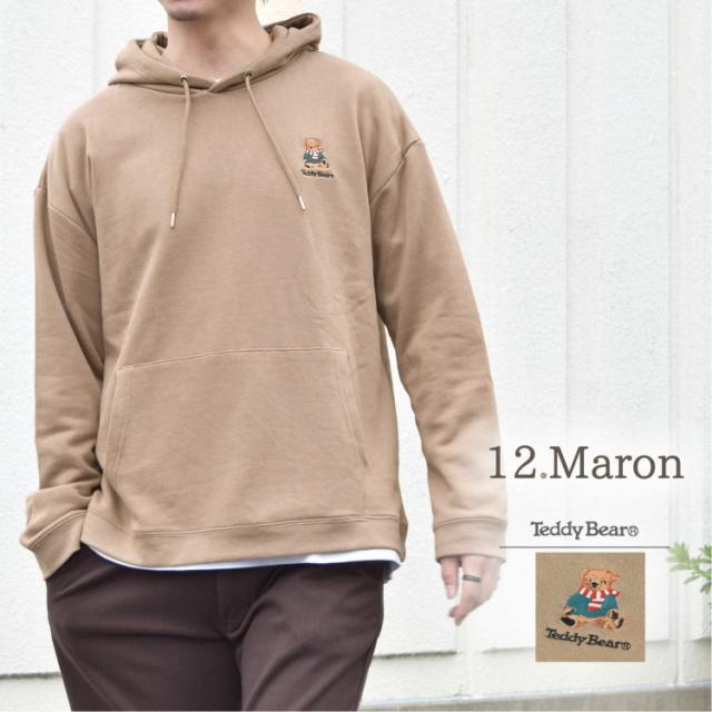 ・胸にワンポイントのテディベア刺繍を可愛らしくあしらったプルパーカー。