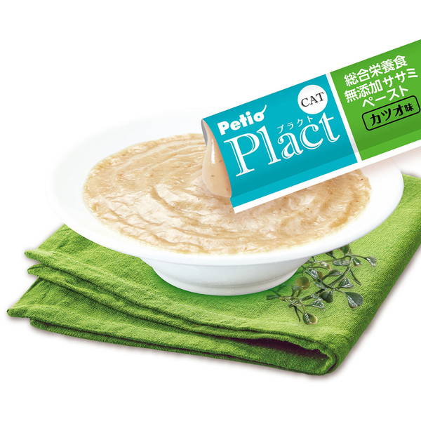 ペティオ プラクト Plact ねこちゃんの 総合栄養食 無添加 ササミペースト カツオ味 4本入 鶏 国産 猫用おやつ プラズマ乳酸菌配合 着色料 酸化防止剤 香料不使用 キャットスナック 1歳〜 全猫種 Petio