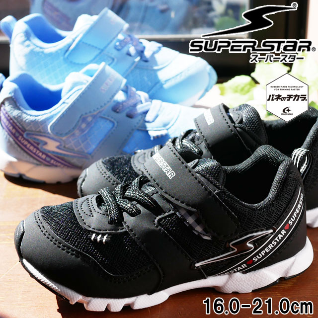 キッズ ジュニア 女の子 スニーカー ローカット 人気 流行 定番 SUPERSTAR Moonstar SS K1013 スーパースター 子供靴 バネのチカラ。 ベルクロ パワーバネ ブラック 黒 サックス