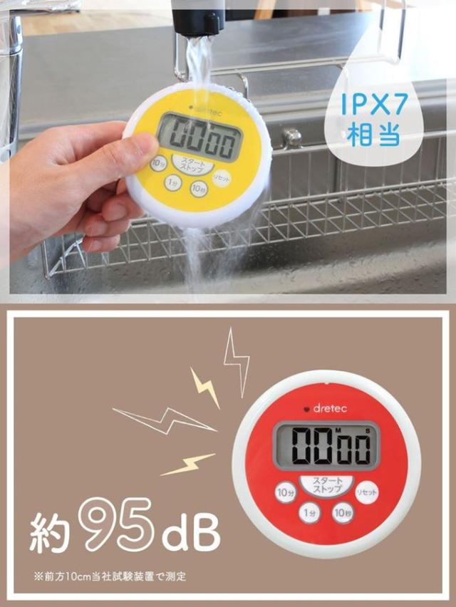 防水キッチンタイマー ドリテック 洗えるタイマー 防水 IPX7 大音量 95dB 長時間199分50秒【メール便/送料無料】