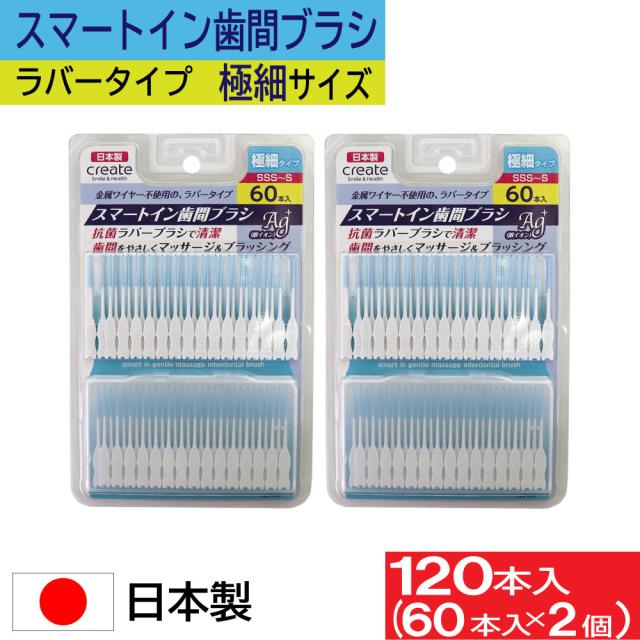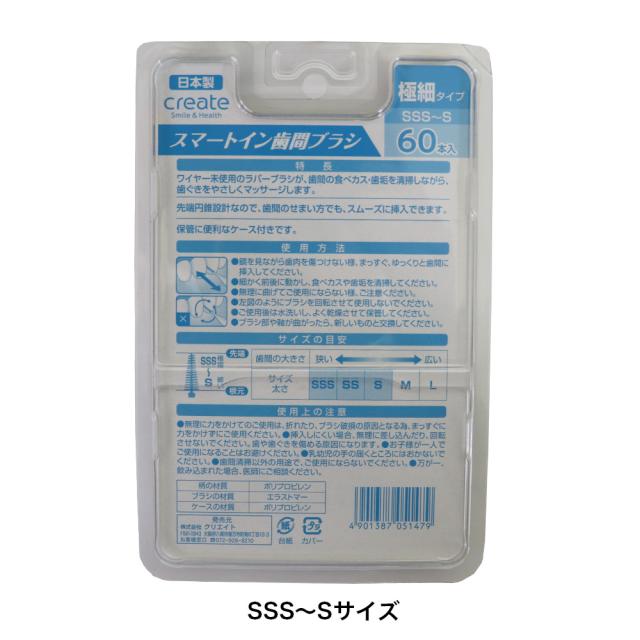 歯間ブラシ デンリスト スマートイン 極細タイプ SSS〜S 60本 2個セット 日本製 携帯ケース付き