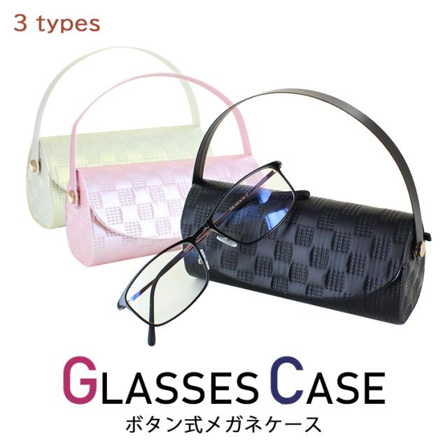 メガネケース おしゃれ 眼鏡ケース セミハード めがねケース ボタン式 サングラスケース 70C125 タイルパターン ブラック パールピンク パールホワイト 持ち手つき 上品 かわいい 可愛い 老眼鏡ケース 小物入れ 持ち運び便利【送料無料 沖縄以外】 プレゼント ギフト