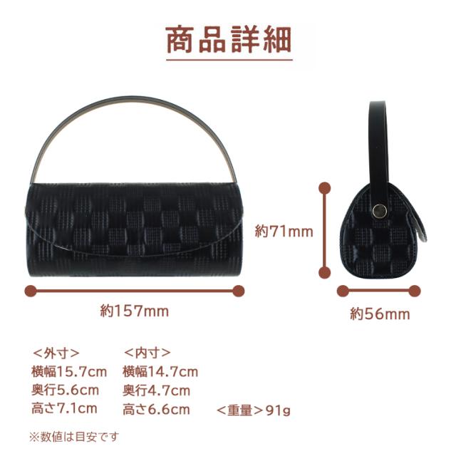 | COL1 ブラック/タイルパターン COL2 パールピンク/タイルパターン COL3 パールホワイト/タイルパターン ●付属品:メガネクロス ●重量:約91g | 外寸(約):157mm×56mm×71mm 内寸(約):147mm×47mm×66mm ●素材 本体: 合皮、ポリエステル | 商品について 取り寄せ商品(2〜3営業日以内の発送) ご注文のタイミングによりまして、欠品でご用意できない場合もございます。 あらかじめご了承のほど、お願いいたします。 |