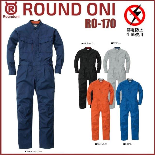 長袖ツナギ RO-170 ROUND ONI RO170 帯電防止素材 丸鬼商店 (社名ネーム一か所無料)(すそ直しできます)