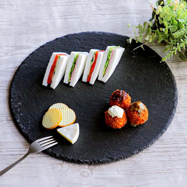 天然素材ならではの無骨な質感がスタイリッシュなスレートプレート。上品な黒色が食材の色を際立たせ、どんなお料理も引き立てて格好良く決まり、淡い色が多い和食も彩り良く盛り付けられます。丸型や正方形など、形やサイズもバリエーションが豊富で、選択の幅が広いのも魅力。お料理や用途に合わせて気軽にスレートプレートを取り入れてみませんか。