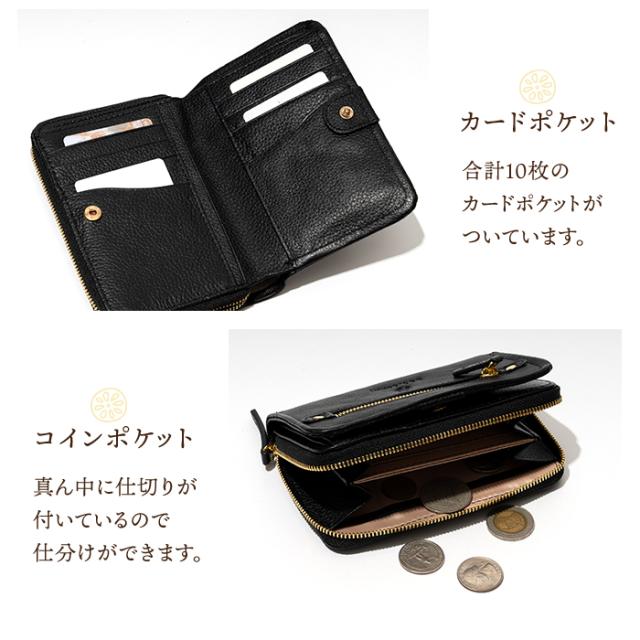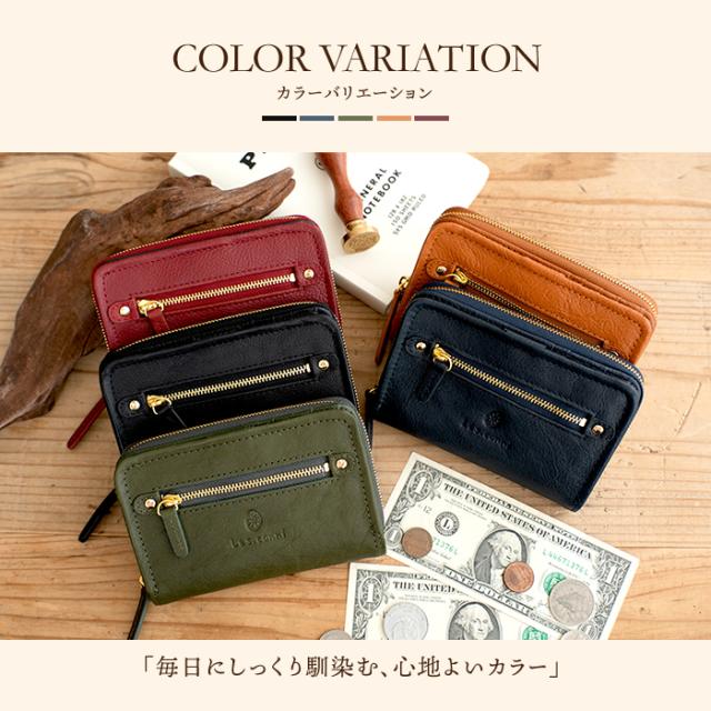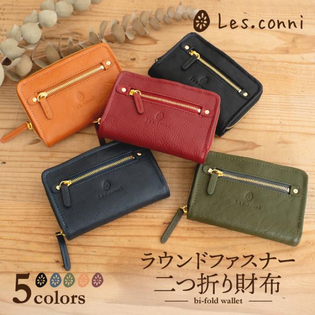 財布 レディース 二つ折り財布 本革 ラウンドファスナー 牛革 Les.conni 抗菌防カビ加工 除菌加工 シンプル おしゃれ 革財布 サイフ 送料無料