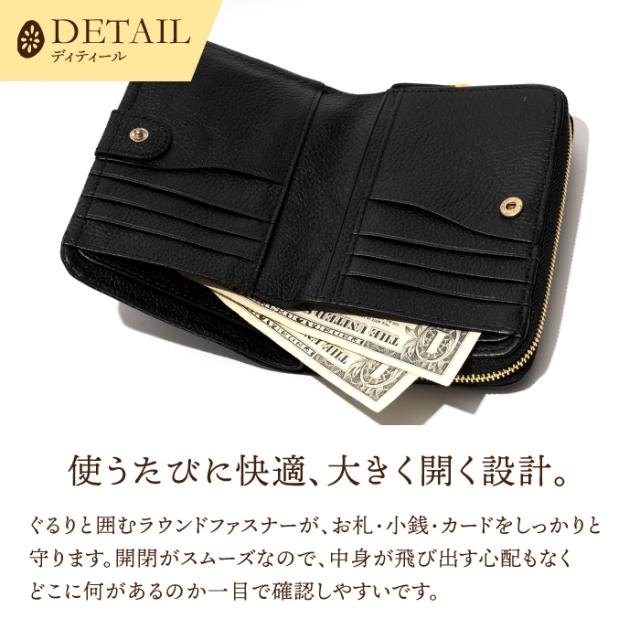大容量なラウンドファスナータイプのレディース二つ折り財布