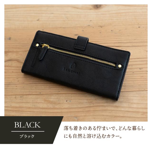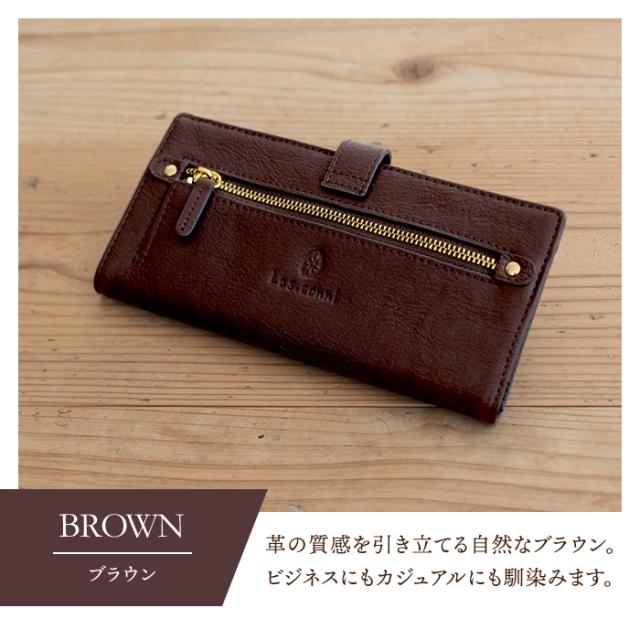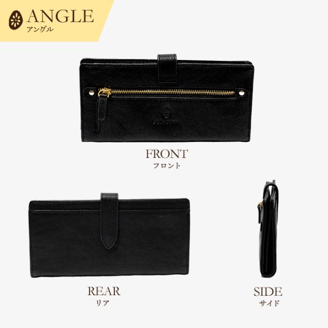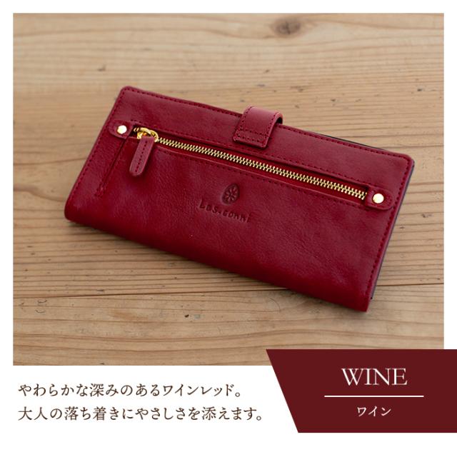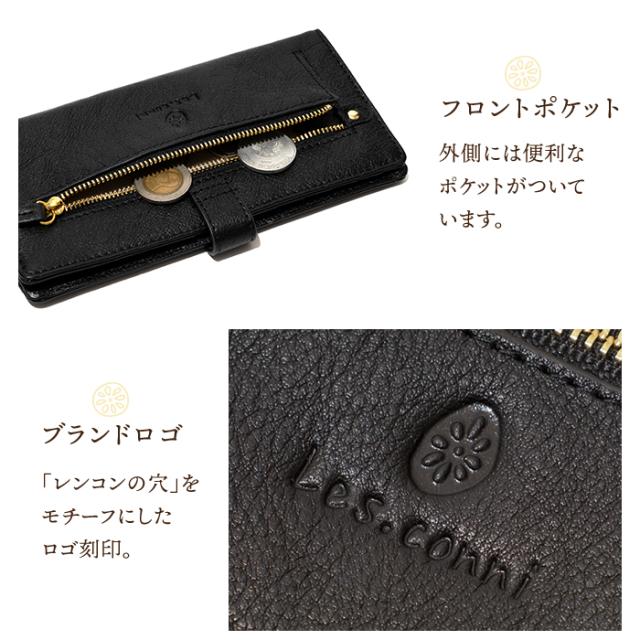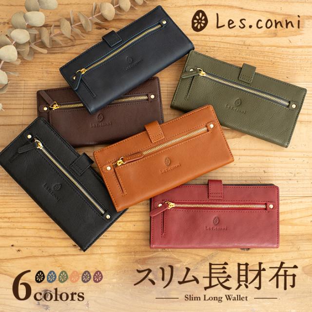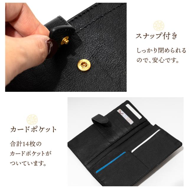 財布 レディース 長財布 二つ折り フラップ付き 本革 スナップボタン ボタン 牛革 Les.conni 抗菌防カビ加工 除菌加工 革財布 ギフト