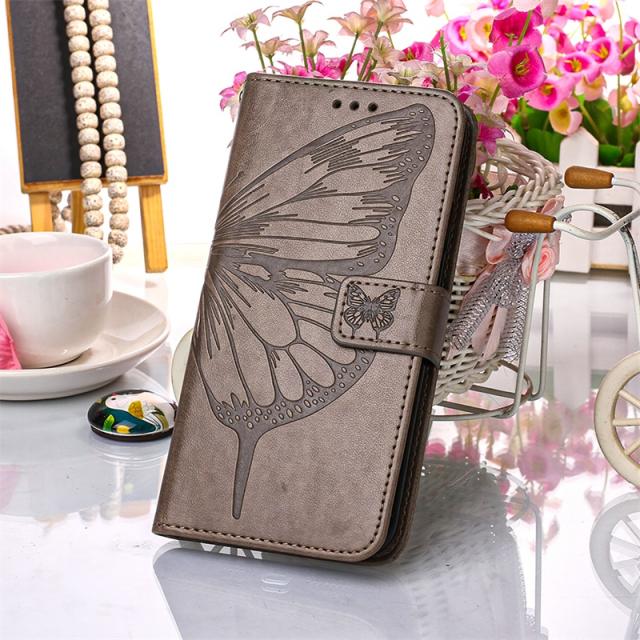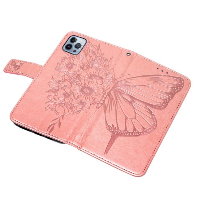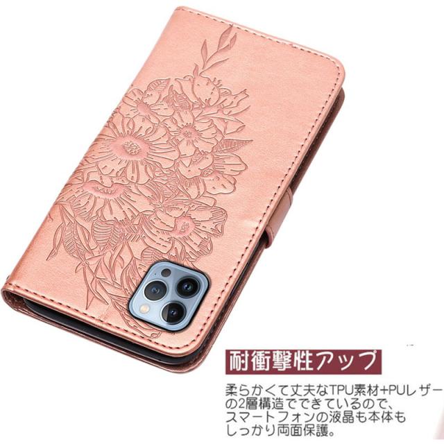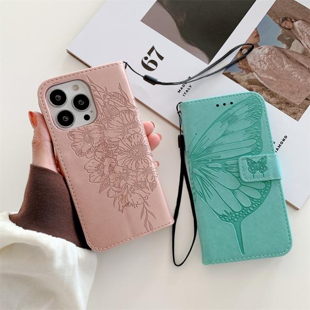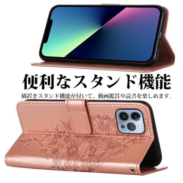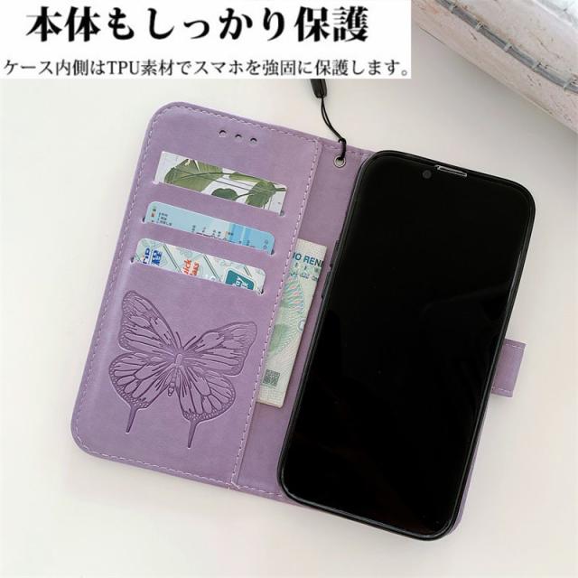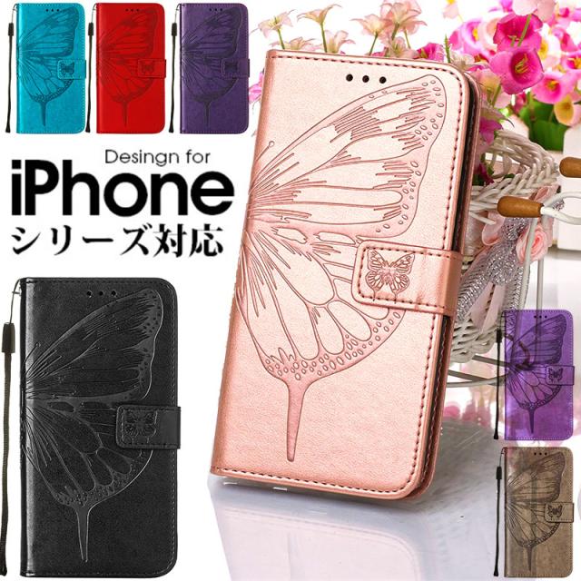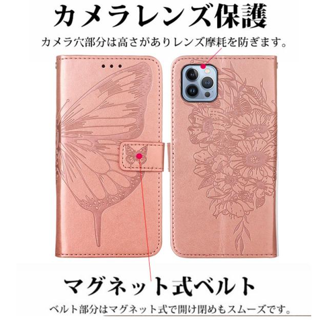 ※ 華やかな蝶レザー型押しされた手帳型スマホケースです。
