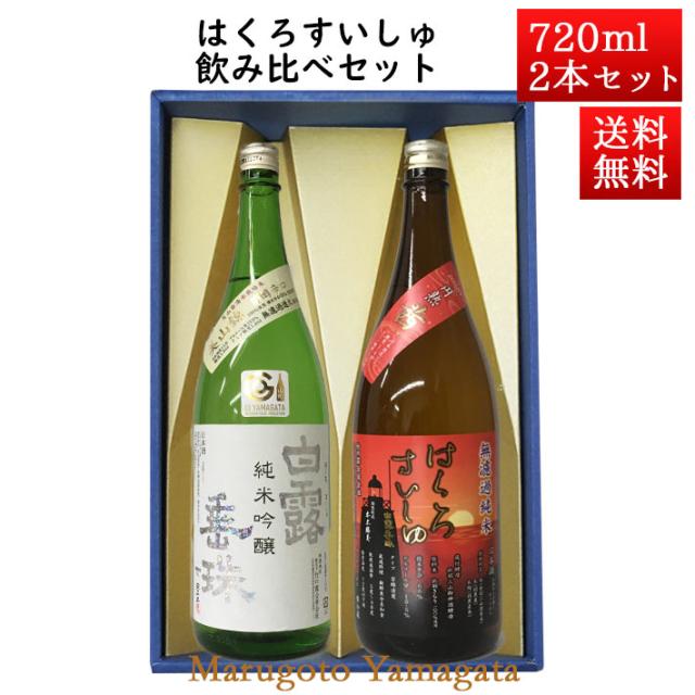 日本酒 飲み比べセット はくろすいしゅ純米吟醸 白露垂珠 美山錦 × 無濾過純米 円熟 茜(ruby) 720ml×2本セット 化粧箱入 山形 竹の露