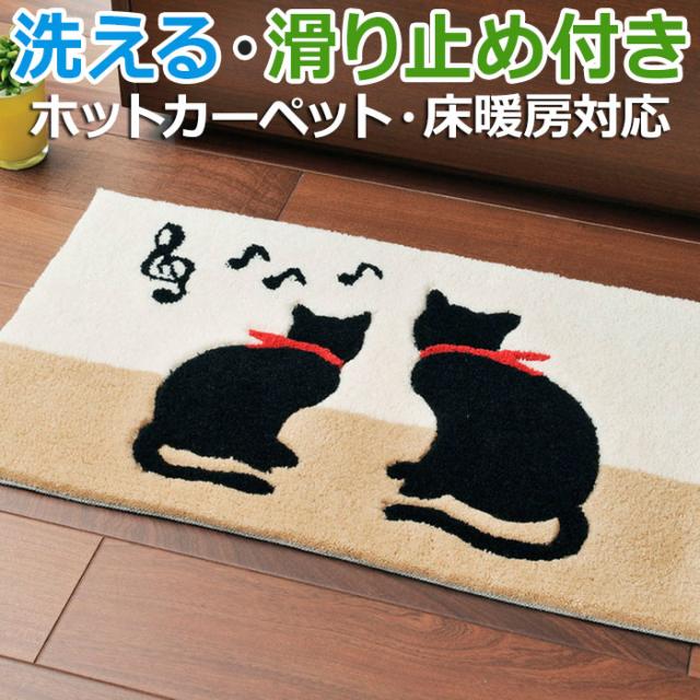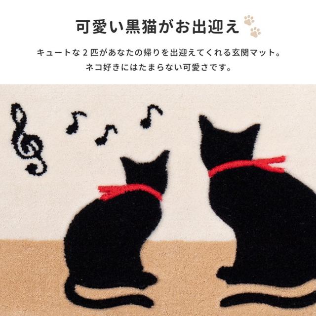 洗える 玄関マット 室内 厚手 ねこ柄 約 45×75cm おしゃれ 北欧調 可愛い 滑り止め付き マット キャット (H) ベージュ ラグマット 音符 ネコ 猫 引っ越し 新生活