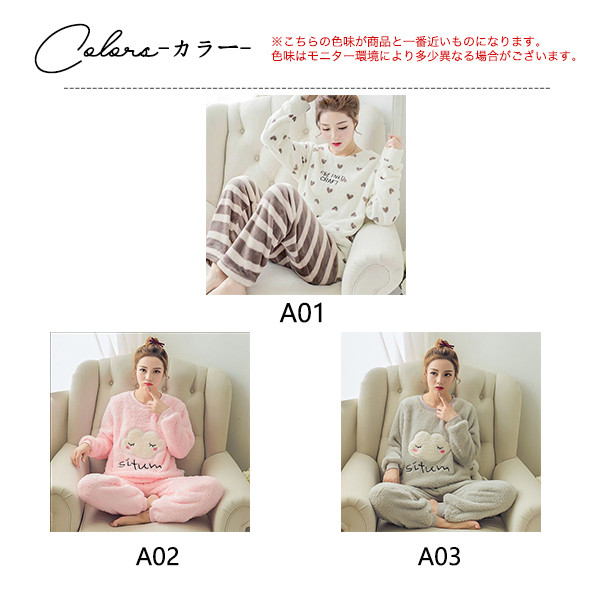 ルームウェア レディース パジャマ 上下セット 大きいサイズ フリース もこもこ 厚手 可愛い カラフル 冬 ふわもこパジャマ 暖かい 秋冬対応