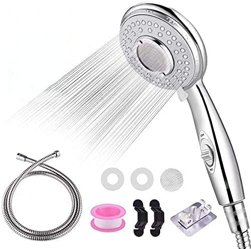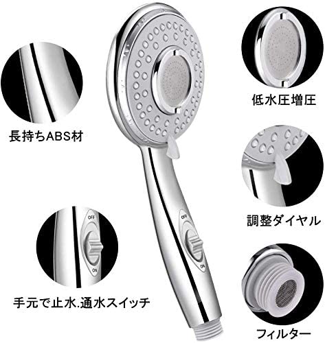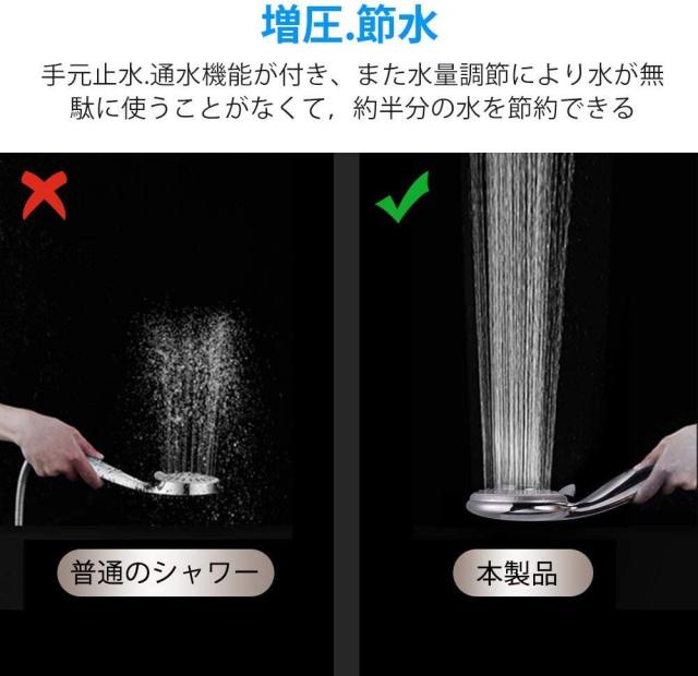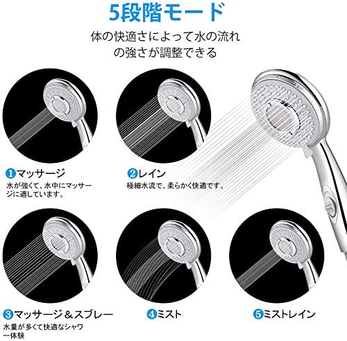 シャワーヘッド 節水シャワーヘッド 5段階切り替え 塩素除去 増圧 手元止水.通水 水量調整機能 極細水流 水漏れ防止 取り付け簡単 シャワーブラケット・シャワーホース付き 1.5M国際汎用基準G1/2