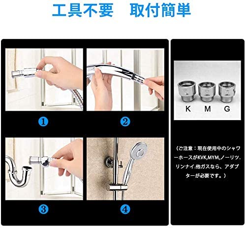 (ご注意:現在使用中のシャワーホースがKVK,MYM,ノーリツ.リンナイ.他ガスなら、アダプターが必要です。)