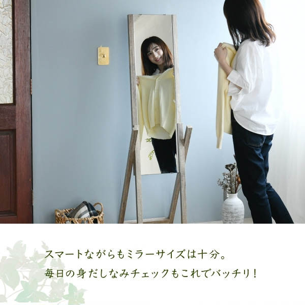 【メーカー直送】JKプラン グリーンインテリア スタンドミラー シャビー おしゃれ シンプル 一人暮らし 木製 FAW-0008-NA