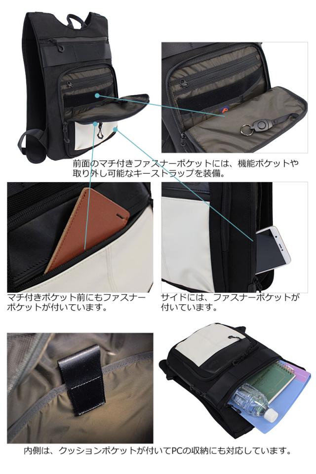 仕分けに便利なポケットも充実しており、タブレット等の収納にも適しています。