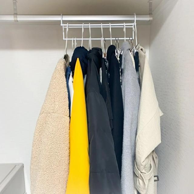 - ちょっと内径が小さめのハンガーが新しい家のポールでは掛からなかったので、こちらを購入しました。収納もいい感じだし、ハンガーも問題なくかけれたので、良かったです。