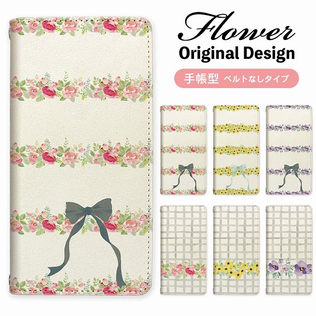 スマホケース 手帳型 ベルトなし フラワー ボーダー 花柄 マグネット マグ閉じ スタンド機能 スマホカバー 携帯ケース Pixel9a グーグルピクセル10 basio active3 iPhone17 iPhone16e iPhone15 AQUOS sense10 sense9 Xperia 10VII 多機種対応 送料無料 ローズ ひまわり