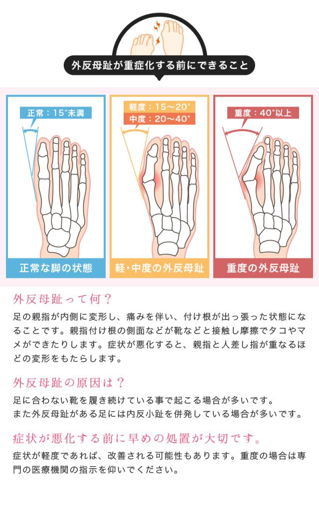 外反母趾による痛みや足の歪みを正常な位置へ戻すのを助けます。