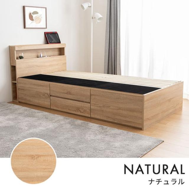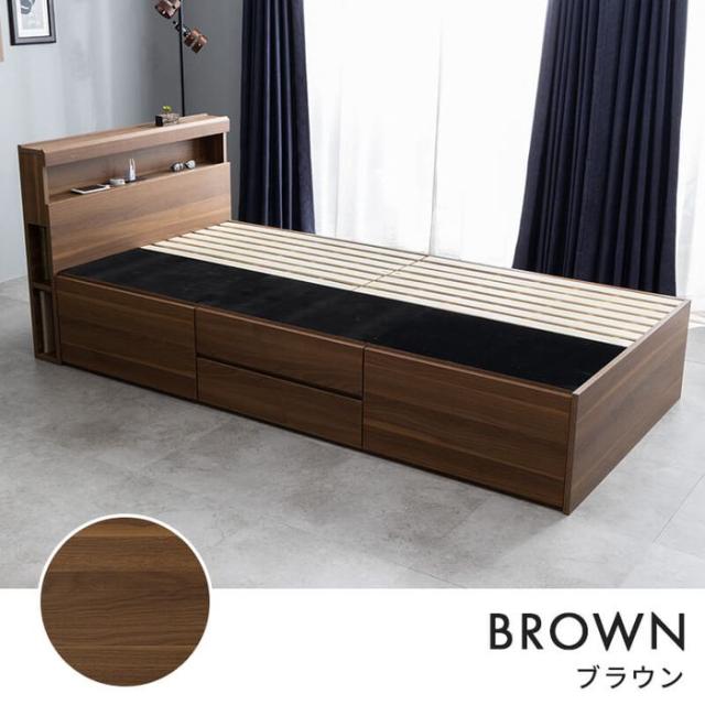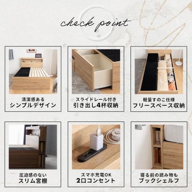 引き出し4杯チェスト収納 棚・コンセント付きベッド シングル