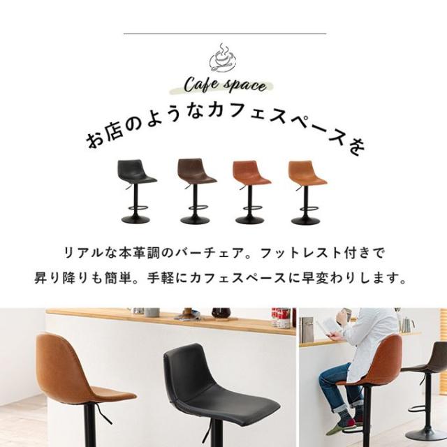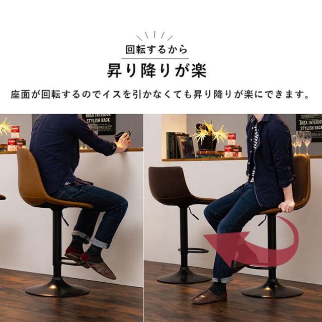 リアルな本革調の昇降式バーチェア。360度回転式で、昇り降りもラクラク。