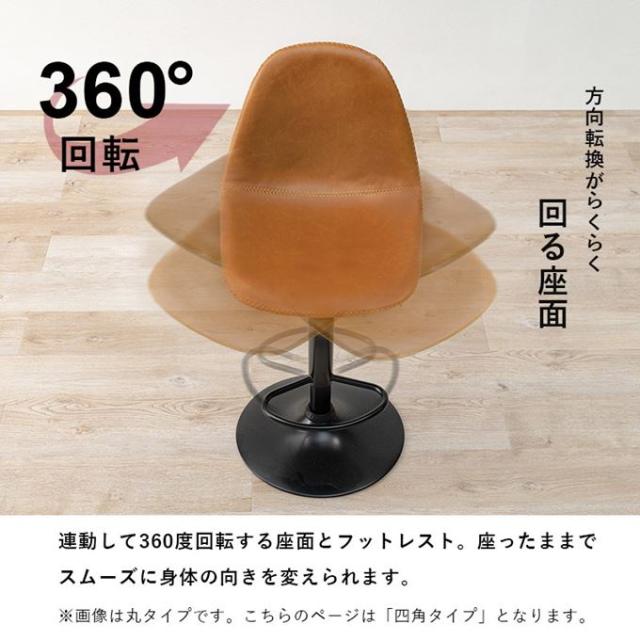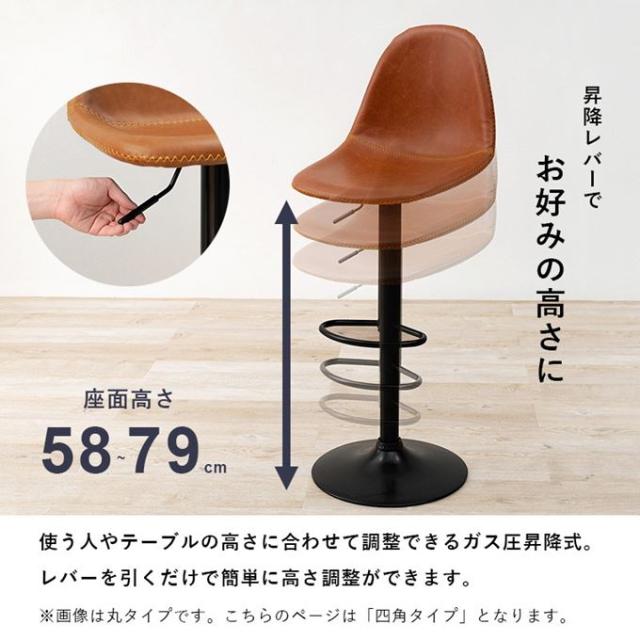 カウンターチェア バーチェアー おしゃれ 椅子 ハイスツール 360度回転 高さ調節 昇降式 本革調 合成皮革レザー