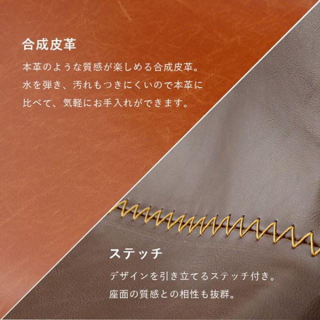 ●本革の様な質感が楽しめる合成皮革、水を弾き、汚れもつきにくいので気軽にお手入れができます。