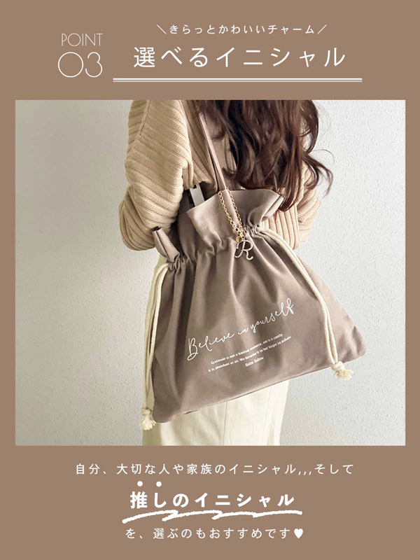 ※イニシャルバッグチャームはお客様ご自身でお付けくださいますようお願い致します。