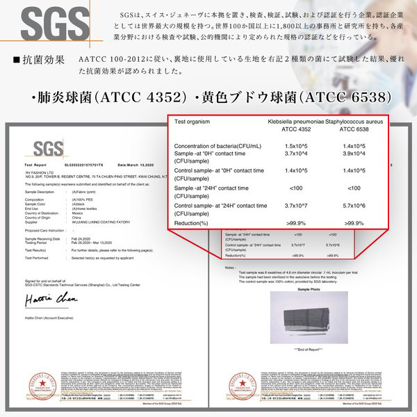 ” SGS抗菌試験をクリアした抗菌・防臭加工生地 ”