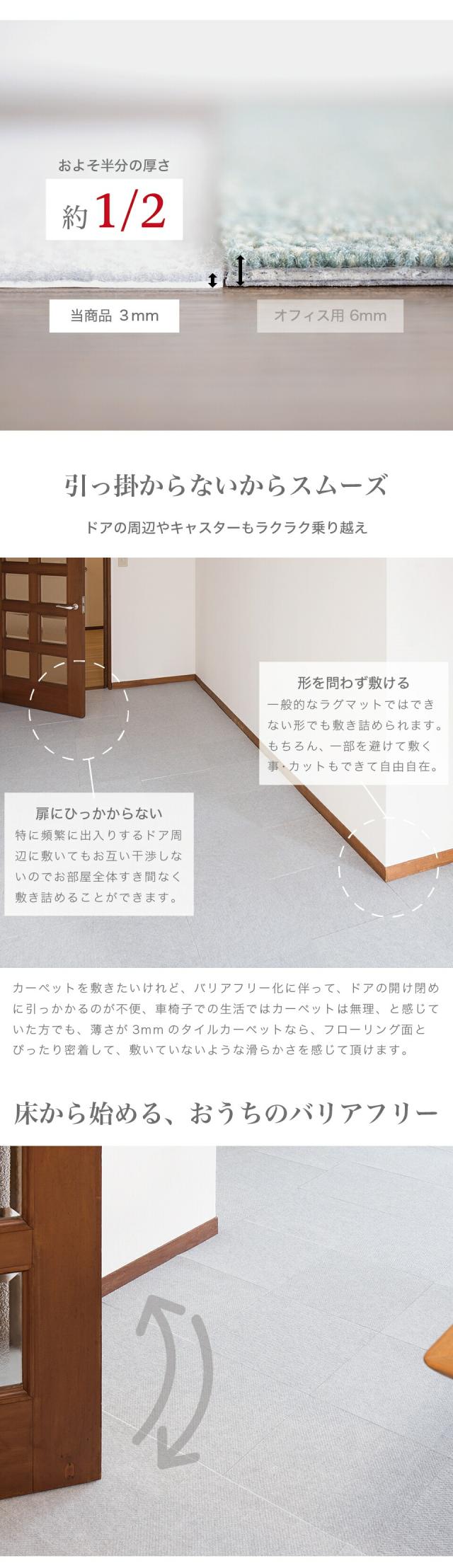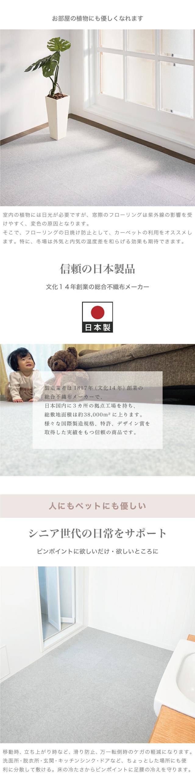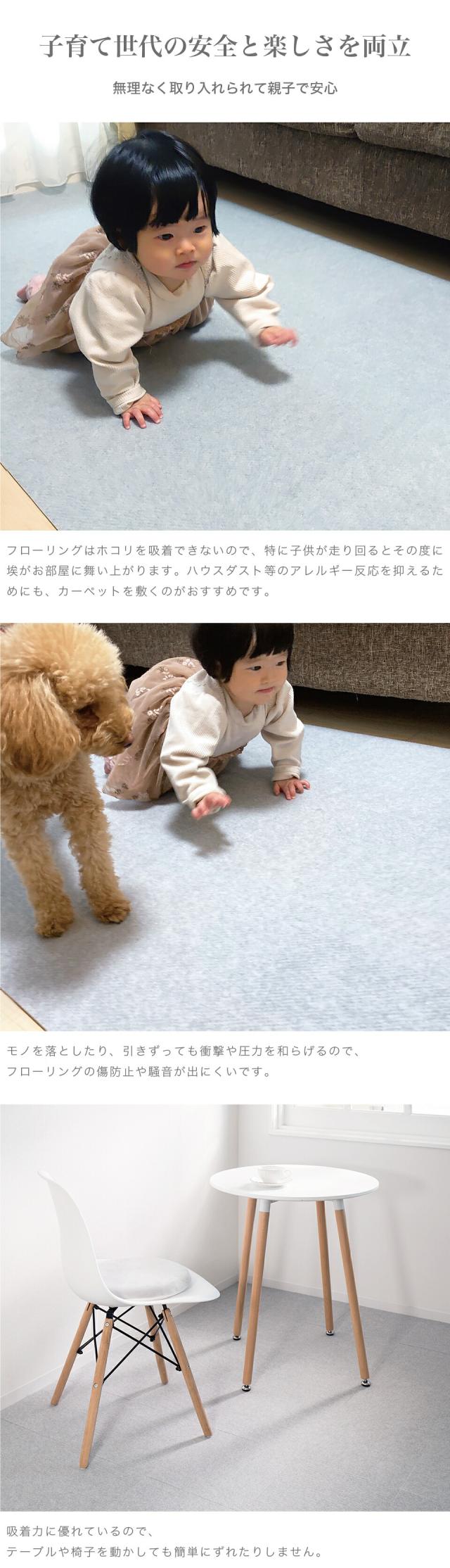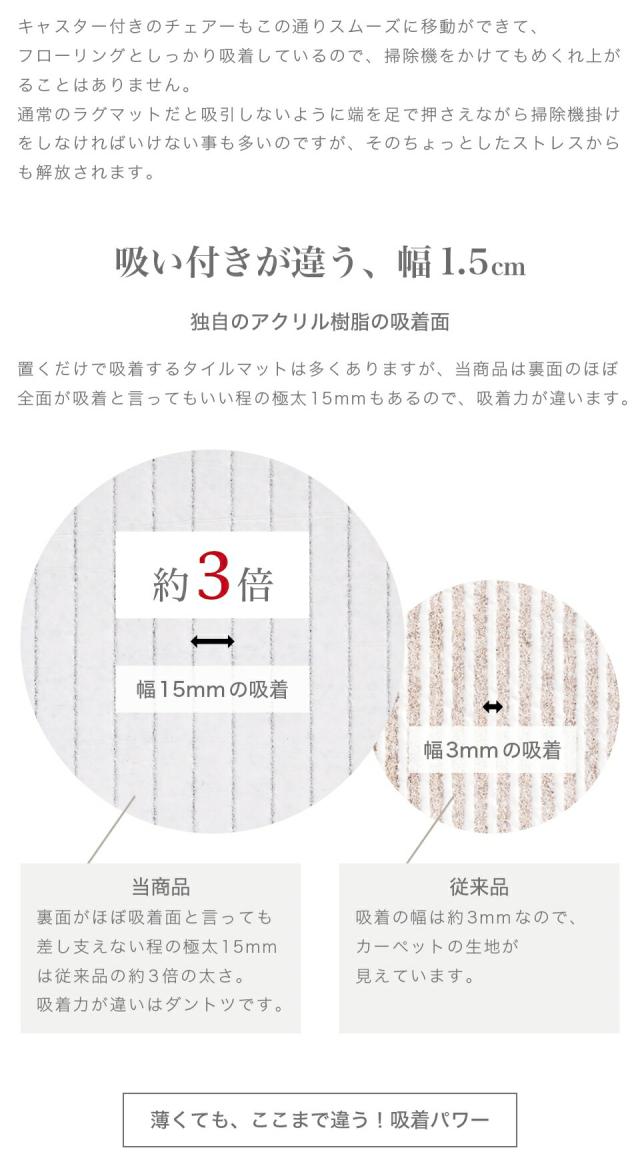 ■商品説明セット内容:108枚入り裏面は特殊吸着加工で床にピタッと吸着。簡単に外せて跡も残りません。目に見えない無数の気孔があり上から力が加わると空気が抜けて真空状態になります。それが無数の吸盤となり、くっつく仕組みです。吸盤の様にピッタリ貼り付き、掃除機で吸い込んでも、犬が走り回ってもめくれず、つまづきにくく安全です。床にキズがつきにくく、掃除もラクラク。汚れた部分だけ外して洗濯機で洗えます。ウォッシャブル 防音対策 キズ防止 滑り防止 ※床暖房には対応しておりませんのでご了承ください。北欧好きやDIY好きにもオススメ!一人暮らし・ファミリー・子供部屋からオフィスまで新生活におすすめの高品質でおしゃれな家具・インテリア・生活雑貨の通販サイト、家具ドキッ!です!!なるべくお求めやすくご提供するために、工場出荷(ファクトリーアウトレットシステム)でのお届けを導入しています。■商品仕様表面 / ポリエステル裏面 / アクリル樹脂 日本製 日本産 国産 ■商品サイズ約29.5×29.5cm■色グレー グレージュ ブルー ローズ レッド ピンク 赤 青 ベージュ 濃ベージュ 濃グレー 濃ブルー 濃ローズ 淡ベージュ 淡グレー 淡ブルー 淡ローズ タイルマット ベージュ 洗える 丸洗い タイルマット 29×29 29.5×29.5 30×30 吸着 タイルカーペット タイルカーペット 29.5 29 30 タイルカーペット 洗える フリーカット 貼り替え リフォーム ラグ 滑り止め 絨毯 洗える 丸洗い オールシーズン キッチンマット ペット カット 置くだけ 防音 吸着カーペット 吸着マット 使い捨て トイレマット 廊下敷き 無地 剥がせる 貼り替え 夏用 冬用 業務用 洗える カーペット 防音 セット 吸着 タイルカーペット ペット タイルカーペット タイルマット 大判 おくだけで吸着タイルマット おくだけタイルマット セット売り 送料無料 1畳 1.5畳 2畳 3畳 4畳 4.5畳 4畳半 4畳用 4 5 畳 5畳 6畳 8畳 10畳 12畳 1帖 1.5帖 2帖 3帖 4帖 4.5帖 4帖半 4帖用 4 5 帖 5帖 6帖 8帖 10帖 12帖 一畳 二畳 三畳 四畳 四畳半 五畳 六畳 八畳 十畳 十二畳 一帖 二帖 三帖 四帖 四帖半 五帖 六帖 八帖 十帖 十二帖 5cm 40cm 80cm 100×100 100×140 130×185 140×140 150×150 160×200 180×180 180×240 182cm 185×185 185×240 190×190 200×200 200×240 200×250 200×300 230×330 240×240 240×300 250×200 250×250 250×350 261×261 261×352 300×250 300×300