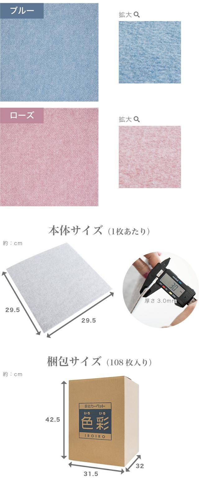 108枚 吸着カーペット 色彩(いろいろ) 29.5cm×108枚入 6畳 フローリング用 洗える カーペット 防音 セット 吸着 タイルカーペット ラグ 無地 ペット 人気 見切り タイルカーペット タイルマット 大判 おくだけで吸着タイルマット おくだけタイルマット 送料無料