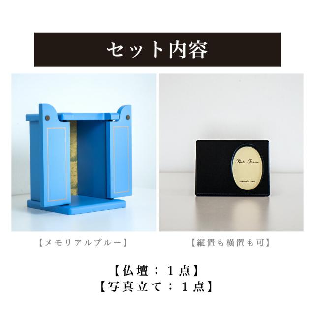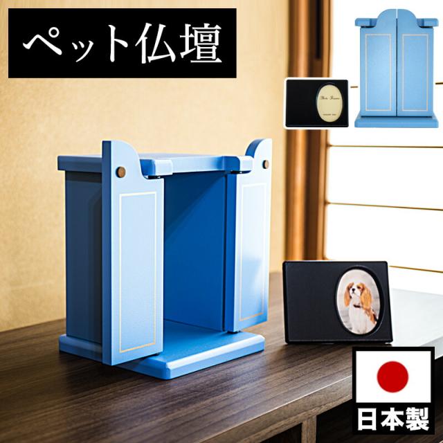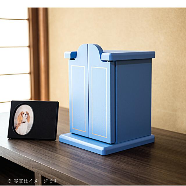 ペット仏壇 ミニサイズ ブルー 写真立て付 ペット供養 分骨 コンパクト仏壇用 本棚サイズ 厨子 終活